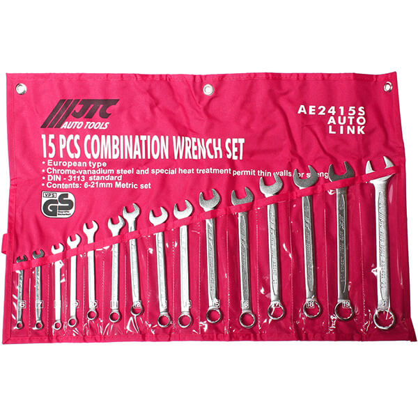 Набор комбинированных ключей 6-21 мм в сумке 15 шт. JTC JTC-AE2415S соответствует международному стандарту качества DIN 3113.