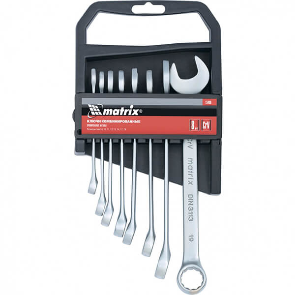 Набор ключей комбинированных 8-19 мм, 8 шт. Matrix 15406 предназначен для монтажа и демонтажа резьбовых соединений.