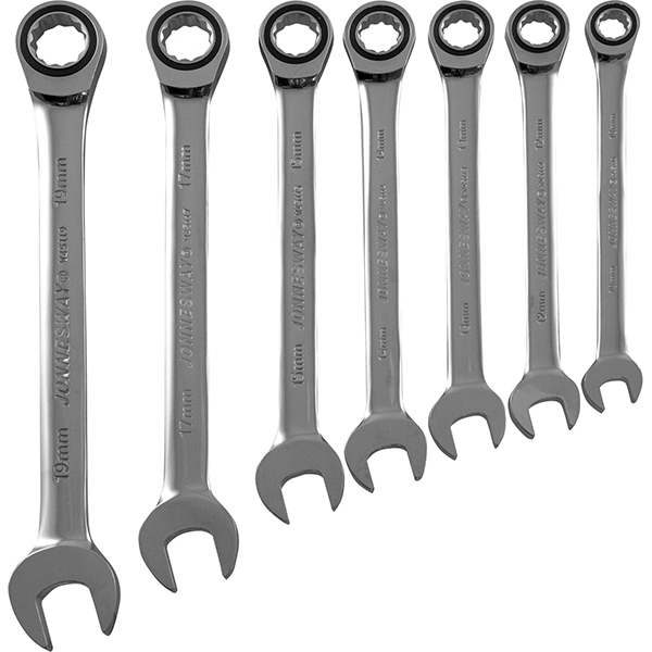 Гаечный комбинированный ключ представляет собой конструкцию, объединяющую рожковый профиль и накидной профиль с рабочей частью со встроенным храповым механизмом. Сочетание двух одноразмерных профилей компенсируют недостатки каждого в отдельности. Храповой механизм с колесом в 72 зуба обеспечивает высокий передаваемый крутящий момент благодаря применяемой хромованадиевой стали, закаленной особым способом. Малый, 5 deg;, обратный ход делает ключ незаменимым в ограниченном рабочем пространстве. Ключи изготовлены по стандарту ANSI, имеют трехслойное хромоникелевое покрытие, зеркально отполированы.