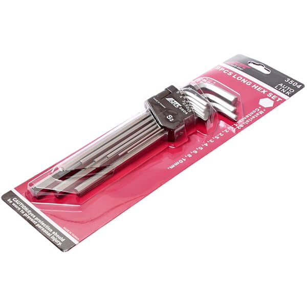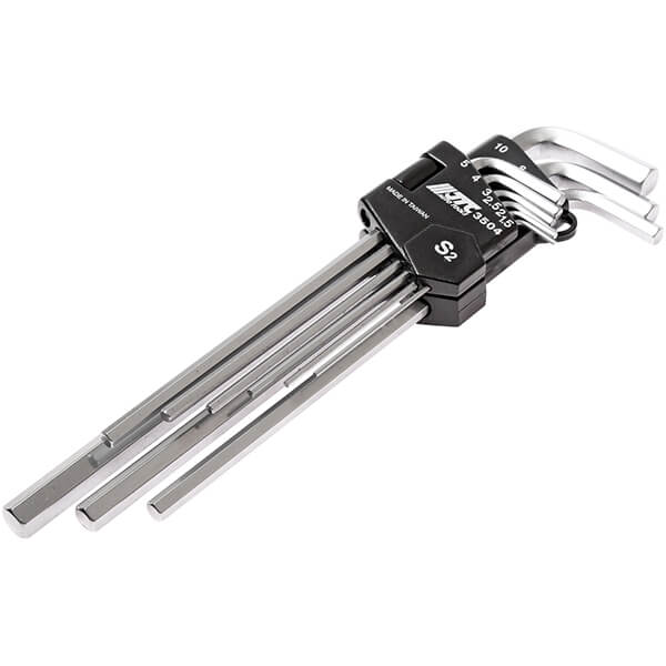 Набор шестигранных ключей 1.5-10 мм удлиненных 9 шт. JTC JTC-3504 специально разработан для работы с болтами. Пластиковый держатель предназначен для удобного хранения инструмента.
