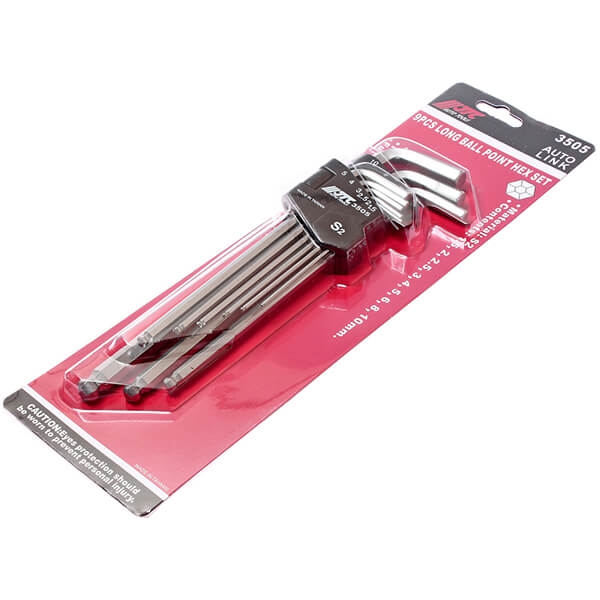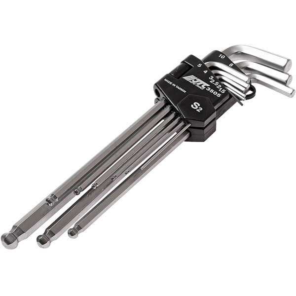 Набор шестигранных ключей 1.5-10 мм с шаром 9 шт. JTC JTC-3505 применяется в местах, где затруднен прямой доступ.