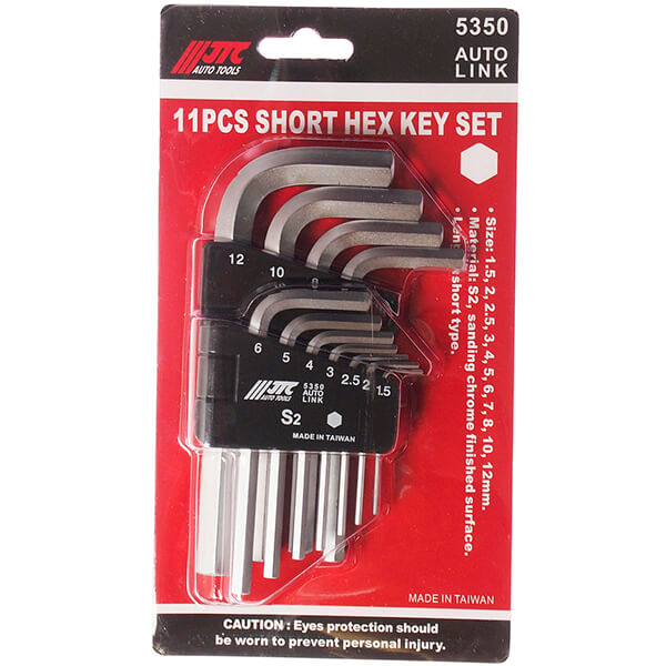 Набор Г-образных шестигранных ключей 1.5-12 мм 11 шт. JTC JTC-5350 применяется для откручивание/ закручивание различного крепежа. В комплект входят 11 изделий различных размеров (1.5, 2, 2.5, 3, 4, 5, 6, 7, 8, 10 и 12 мм). Держатель выполнен из пластика.