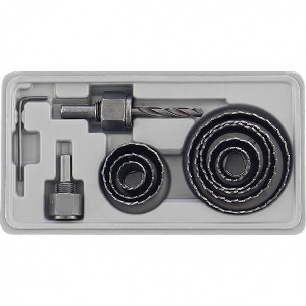- 8 кольцевых пил следующих диаметров: 3/4"=19 мм; 7/8"=22 мм; 1 1/8"=29 мм; 1 1/4"=32 мм; 1 1/2"=38 мм; 1 3/4"=44 мм; 2"=51 мм; 2 1/2"=64 мм.