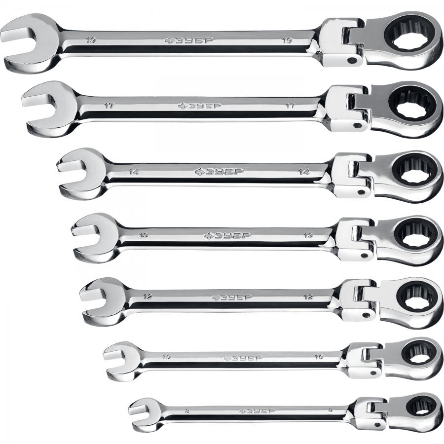 Набор комбинированных гаечных ключей трещоточных шарнирных 7 шт, 8 - 19 мм, ЗУБР 27101-H7