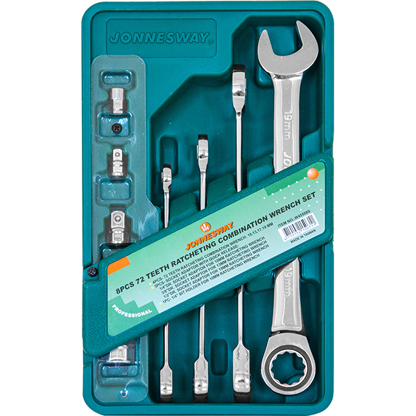 Гаечный комбинированный ключ представляет собой конструкцию, объединяющую рожковый профиль и накидной профиль с рабочей частью со встроенным храповым механизмом. Сочетание двух одноразмерных профилей компенсируют недостатки каждого в отдельности. Храповой механизм с колесом в 72 зуба обеспечивает высокий передаваемый крутящий момент благодаря применяемой хромованадиевой стали, закаленной особым способом. Малый, 5 deg;, обратный ход делает ключ незаменимым в ограниченном рабочем пространстве. Ключ изготовлен по стандарту ANSI, имеет трехслойное хромоникелевое покрытие, зеркально отполирован. Применяется при обслуживании крепежа при свободном вращении. В сочетании с адаптерами используются в качестве трещоточных рукояток для различных насадок.