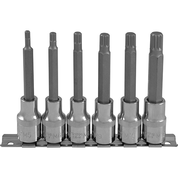 Набор насадок торцевых 1/2"DR с вставками-битами SPLINE, M5-M12, 100 мм, 6 шт 921706 Ombra
