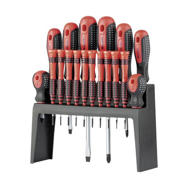Набор отверток Fusion на подвесной полке 18 шт, CrV Matrix 11452 предназначен для монтажных работ. В набор входят стандартные и прецизионные отвертки, а также пластиковая подставка для удобного хранения инструмента. Подставку можно разместить на рабочем столе или прикрепить к стене. Отвертки изготовлены из хромованадиевой стали. Твердость рабочей части 47-52 HRC.