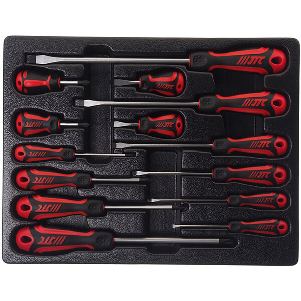 Набор отверток SL, PH 14 предметов JTC JTC-7690 предназначен для обслуживания крепежа с плоским и крестовым профилем.