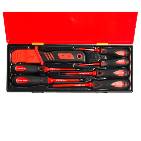 Набор отверток SL3-SL5.5, PH0-PH2 в кейсе 7 пр. JTC JTC-K9071 предназначен для работы с крепежами. Общее количество инструментов: 7 шт.Набор упакован в прочный кейс.