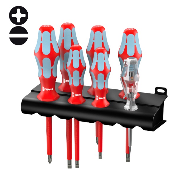 Набор отверток из нержавеющей стали VDE 3160i /7 Wera WE-022728 состоит из 7 (семи) отверток + подставка. Многокомпонентные ручки Kraftform обеспечивают наиболее удобное и быстрое перехватывание отвертки. Инструменты выполнены с рабочим концом Lasertip - лазерными насечками для наилучшего сцепления отвертки с винтом. Применяется такой набор для винтов с прямым шлицем и с крестовым шлицем Phillips-Recess.