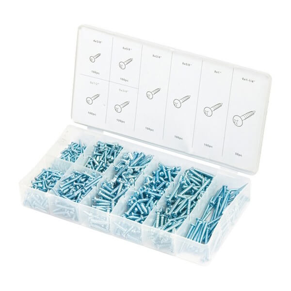 Набор саморезов по металлу, 750 шт Сибртех 47623 - набор наиболее распространенных размеров с полукруглыми головками.