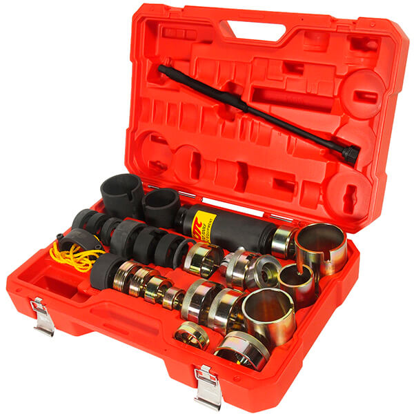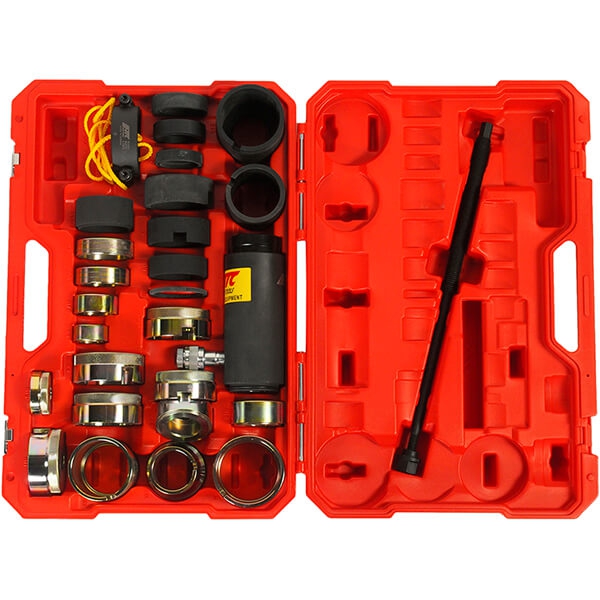 Набор съемников втулок подрамника BMW с гидравлическим цилиндром JTC JTC-4376 позволяет быстро и безопасно снять/установить сайлентблоки подрамников. Экономия рабочей силы. Широкий диапазон применения благодаря большому количеству входящих в комплект приспособлений. Насос поставляется отдельно (артикул JTC-HB600). При мощности насоса 10000 psi (700 кг/см²) максимальное усилие, создаваемое гидравлическим приводом, составляет 15 т. Применяется с адаптером JTC-CP350.