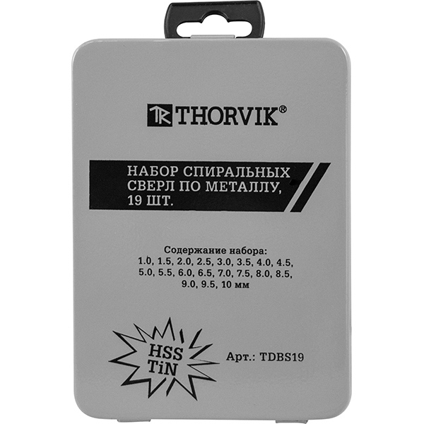 Набор сверл по металлу 1-10 мм, HSS-TiN, 19 шт TDBS19 Thorvik 52481 предназначен для сверления отверстий в металле.