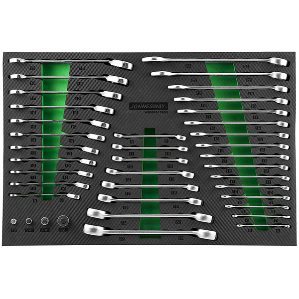 СОДЕРЖАНИЕ: Ключи гаечные комбинированные трещоточные с реверсом, серии "W106", 11 шт.: 8, 10, 11, 12, 13, 14, 15, 16, 17, 18, 19 мм.; Переходники для головок торцевых и вставок-бит, 4 шт.: 1/4"DR, для ключа 10 мм., 3/8"DR, для ключа 13 мм., 1/2"DR, для ключа 19 мм., 10 мм HDR, для ключа 10 мм.; Ключи гаечные комбинированные, серии "W26", 16 шт.: 6, 7, 8, 9, 10, 11, 12, 13, 14, 15, 16, 17, 18, 19, 22, 24 мм. Ключи гаечные разрезные, серии "W24", 8 шт.: 8х10, 9х11, 10х11, 10х12, 11х13, 12х14, 13х14, 17х19 мм.