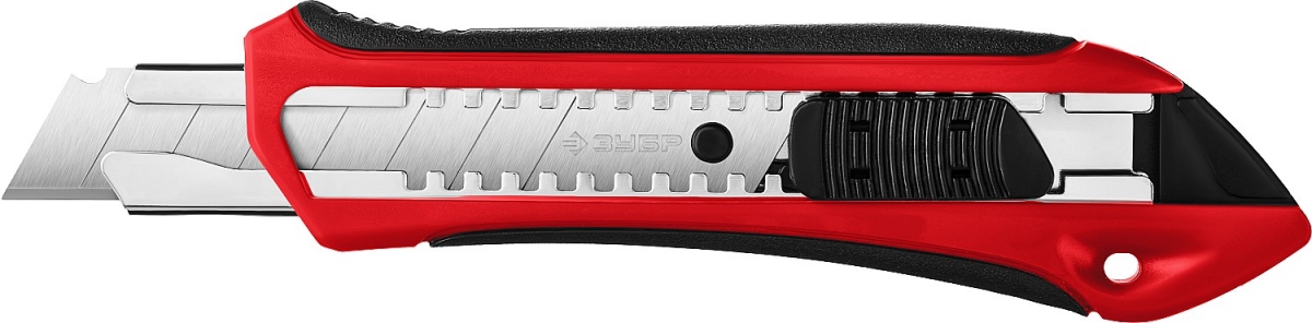 Нож с обрезиненной рукояткой применяется для разрезания различных материалов: линолеума, ковровых покрытий, гипсолитовых плит, гипсокартона, кровельных материалов, пластика, дерева и т.д.