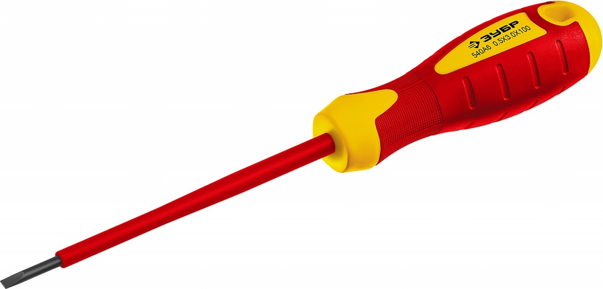 Отвертка диэлектрическая до 1000В, ЗУБР Профессионал ПРОФИ ЭЛЕКТРИК 25261-3.0-075, Cr-V, трехкомпонент рукоятка, SL 3 x 100 мм 25261-3.0-075_z01