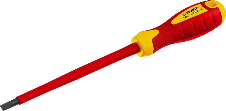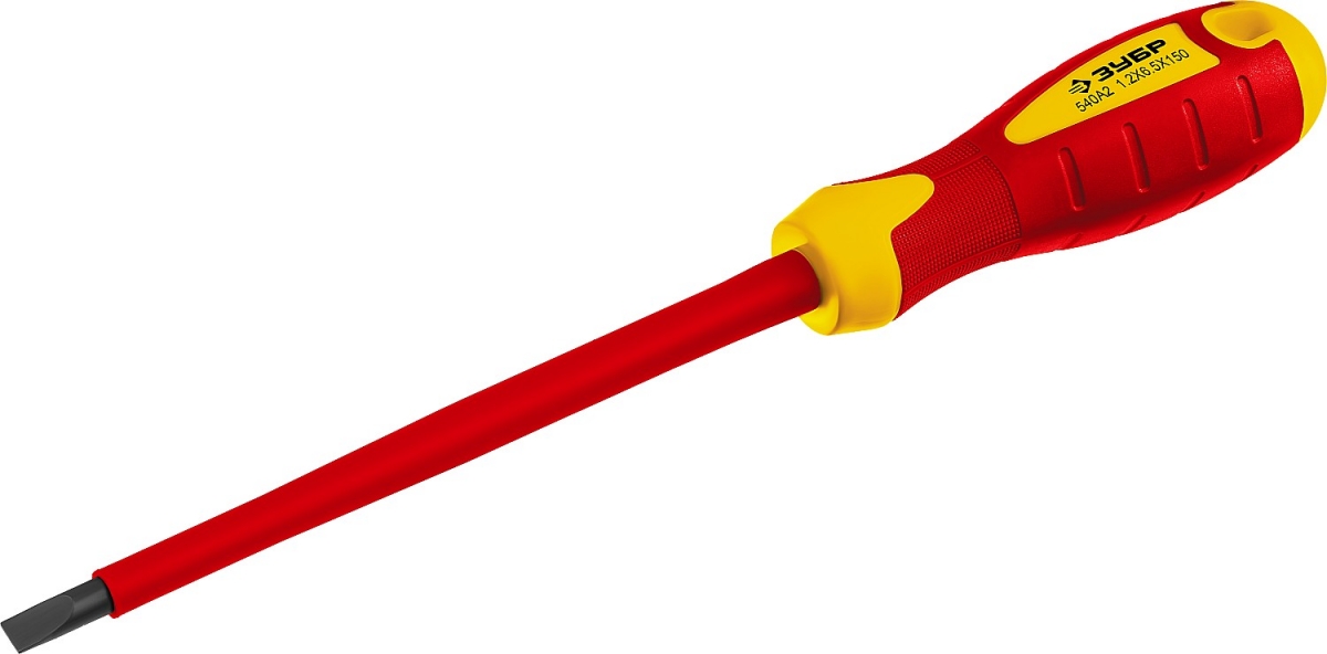 Отвертка диэлектрическая до 1000В, ЗУБР Профессионал ПРОФИ ЭЛЕКТРИК 25261-6.5-150, Cr-V, трехкомпонент рукоятка, SL 6 x 150 мм 25261-6.5-150_z01