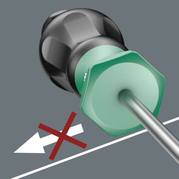 - Шестигранный край ручки предотвращает надоедливое перекатывание отвёртки на рабочем месте;