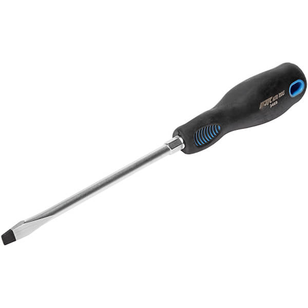 Отвертка шлицевая SL 8.0х150 мм силовая JTC JTC-3469 предназначена для работы с крепежом в автосервисах, мастерских и в быту.