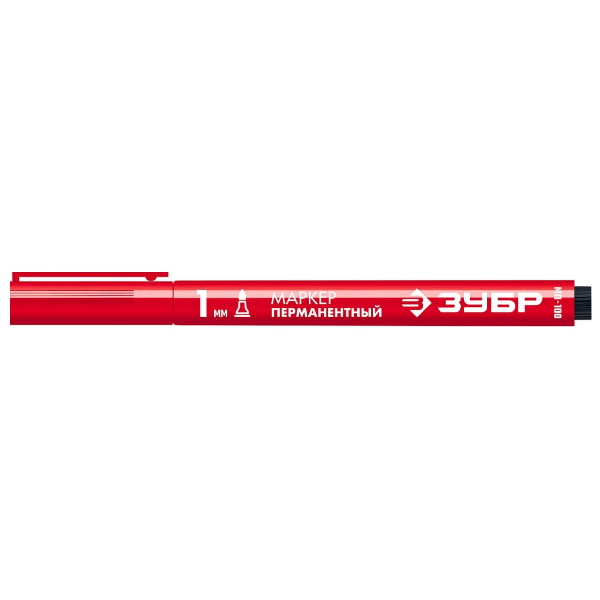 Перманентный маркер 1 мм, заостренный, красный, МП-100 ЗУБР 06320-3 позволяет делать тонкие надписи на мелких и узких предметах.