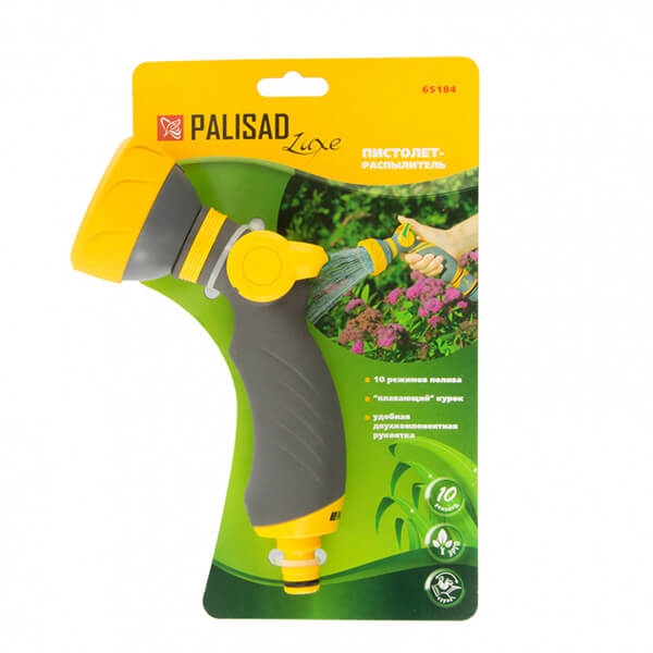 Пистолет-распылитель, 10 режимов полива Palisad Luxe 65184 предназначен для всех типов полива на дачных участках, в садах, парках и скверах. Совместим со всеми элементами системы полива Palisad и Palisad Luxe.