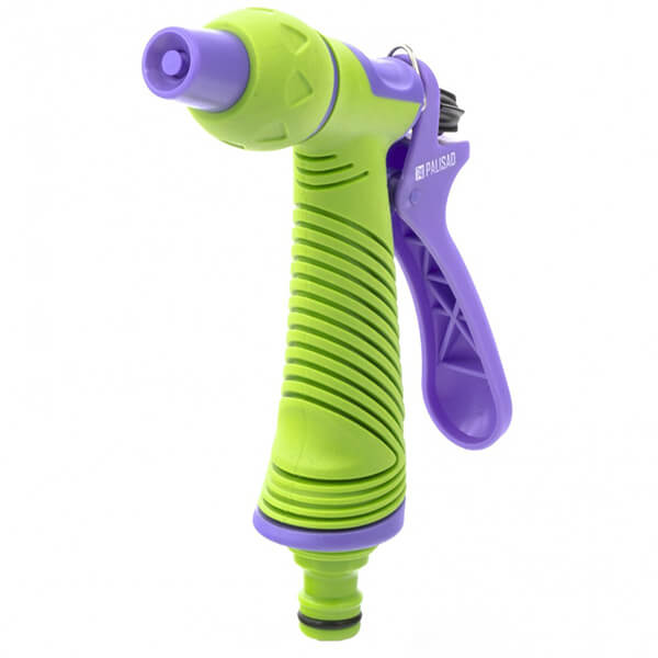 Эргономичный пистолет-разбрызгиватель с курком в современном исполнении из надежных металлических и пластиковых элементов. Конструкция обеспечивает прочность и простоту в эксплуатации. Удобно держать в руке. Предусмотрена плавная регулировка напора: от сильной струи до мелкодисперсного распыления, в зависимости от поставленной задачи, также предусмотрена полная остановка подачи воды. Управление легко осуществляется с помощью одной руки. Совместим со всеми элементами системы полива «Palisad» и «Palisad Luxe».