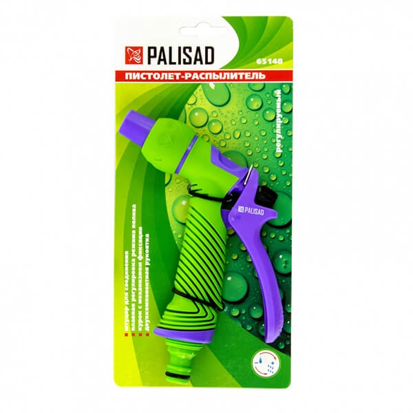 Пистолет-распылитель регулируемый Palisad 65148 используется на даче, в садах, парках и скверах.