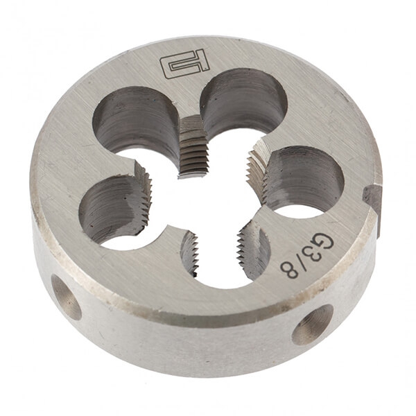 Плашка G3/8 Сибртех 77138 предназначена для нарезания наружной трубной резьбы размером 1/2 дюйма. Плашка изготовлена из стали 9ХС.