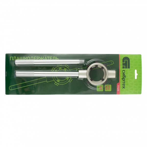 Плашкодержатель М16-M24, 55 мм Сибртех 77455 предназначен для удержания плашек при нарезании резьбы. Изготовлен из высококачественной инструментальной стали. Для более надежной фиксации плашкодержатель оснащен стопорными винтами. Рифленая поверхность рукояток предупреждает скольжение рук, что сделает работу с резьбонарезным инструментом «Сибртех» более комфортной.