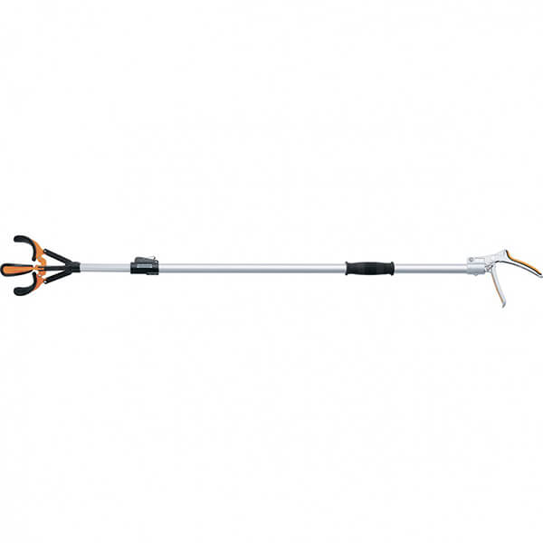 Плодосъемник с захватом, 1370-2060 мм Palisad Luxe 64446 обеспечивает сбор плодов с фруктовых деревьев диаметром на большой высоте. Алюминиевая трех секционная телескопическая штанга регулируется в пределах 1370-2060 мм. Удобная конструкция: захват приводится в действие нажатием на рукоятку. Три пластиковые пластины покрыты термопластичной резиной, что обеспечивает бережный и надежный хват плода диаметром до 190 мм. Данное изделие также можно использовать для извлечения всевозможных предметов из трудно-доступных мест (с крыш, из колодцев и т. д.).