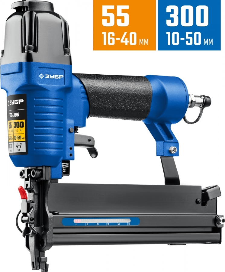 - Применяемый тип расходных материалов: Скобы тип 55 (13-40мм) и гвозди 300 (10-50 мм)