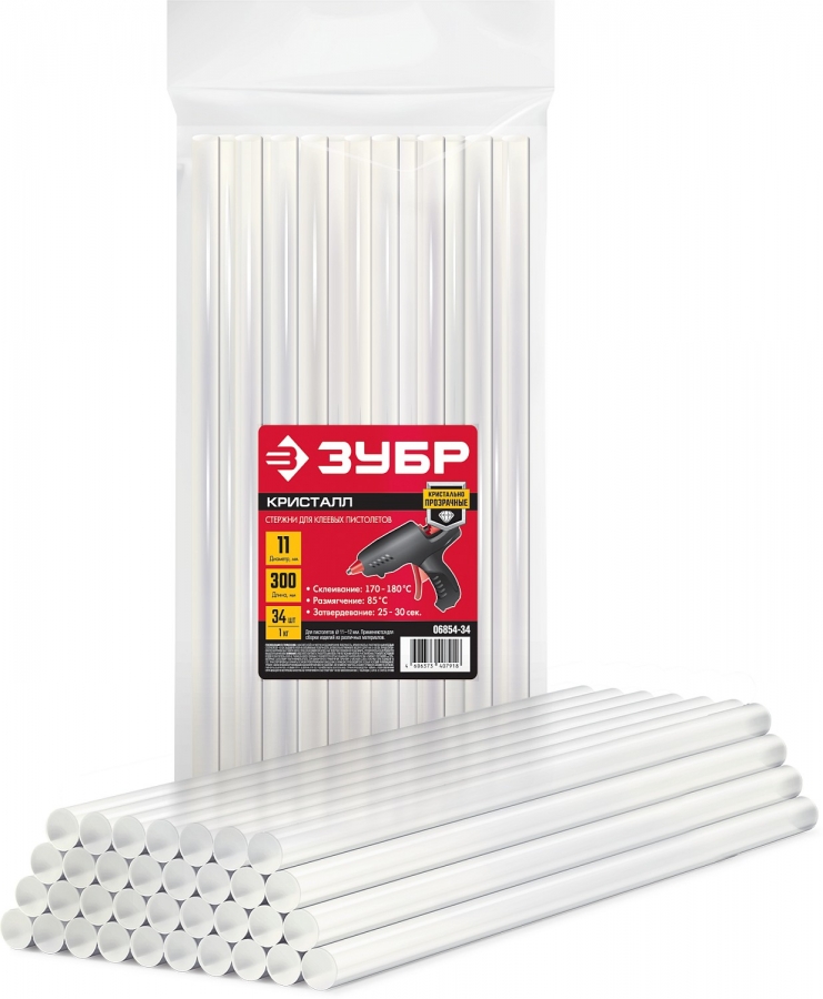 Прозрачные универсальные клеевые стержни, 11 мм х 300 мм, 34 шт, 1 кг ЗУБР 06854-34