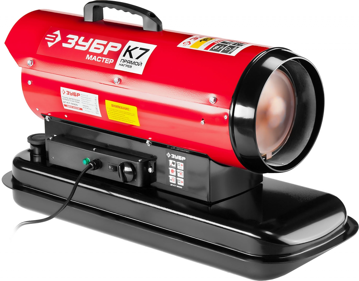 Высокоэффективный дизельный теплогенератор прямого нагрева работающий на дизельном топливе для всех климатических условий. Оптимально подходит для сушки и прогрева на строительных площадках складских комплексов и проветриваемых помещений. Надежный поджиг и эффективное горение гарантируют безотказную подачу тепла в любых условиях эксплуатации. ЗУБР - тепло всегда и везде