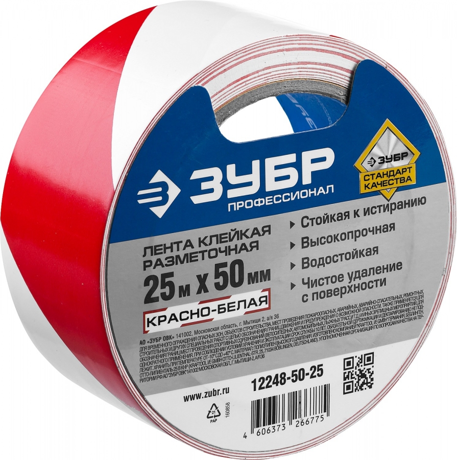 Разметочная клейкая лента, ЗУБР Профессионал 12248-50-25, цвет красно-белый, 50мм х 25м 12248-50-25