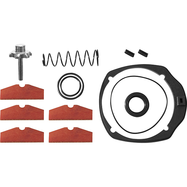 Набор используется при ремонте пневматического двигателя гайковерта ОМР11212С, в случае потери им заявленных характеристик (износ), обеспечивая восстановление работоспособности ротора, герметичности статора и воздушных каналов изделия. В комплект поставки входят: Лопасти ротора 5 шт. Воздушный клапан Возвратная пружина Набор уплотнительных колец и прокладок.