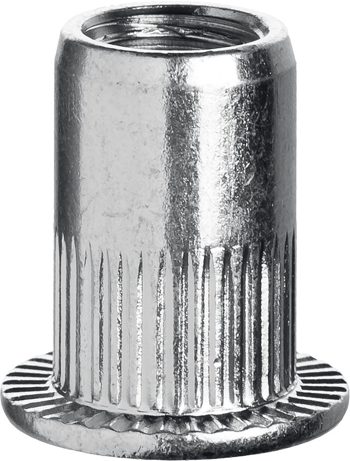 Использование стальных резьбовых заклепок при монтаже различных конструкций дает возможность профессионалам существенно сократить время работы. Для установки заклепок достаточно иметь доступ с одной стороны скрепляемых материалов. Монтаж осуществляется при помощи резьбового заклепочника.