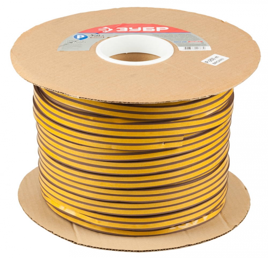 Резиновый уплотнитель ЗУБР самоклеящийся, профиль P , размер 9х5,5мм, коричневый, 250м 40932-250