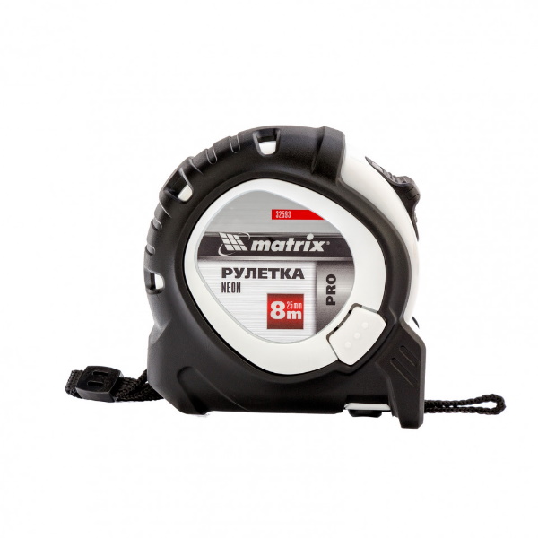 Рулетка Neon 8 м x 25 мм, обрезиненный корпус Pro Matrix 32593 предназначена для проведения линейных измерений до 8 м.