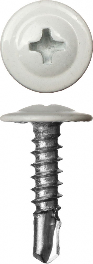 Саморезы ПШМ-С со сверлом для листового металла, 16 х 4.2 мм, 500 шт, RAL-9003 белый, ЗУБР 300211-42-016-9003