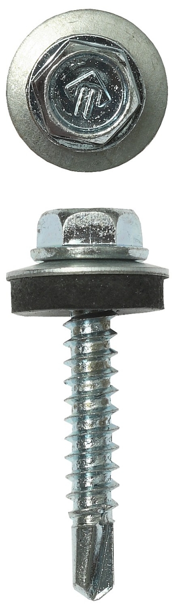 Кровельные саморезы изготовлены из стального прутка с высоким содержанием углерода. Контроль за геометрией самореза начинается с калибровки прутка и заканчивается тщательной проверкой размеров готового изделия. Нормативная твердость стали достигается термической обработкой. Поверхностная твердость мин. 560HV, твердость в сердцевине 240-425HV. Шайба с прокладкой EPDM плотно прижимается к кровельному материалу, герметизируя просверленное отверстие. Шестигранная головка выдерживает большой крутящий момент и значительно облегчает вкручивание самореза. Геометрические размеры: диаметр шайбы (Dw) - 13.90-14.15мм, толщина прокладки (Ar) - 2мм, Размер под ключ (S) - 7.8-7.9мм, диаметр резьбы (D) - 4.75-4.95мм, диаметр сверла (dp) - 2.8-2.9мм, длина сверла (ds) - 4.0-4.8мм, шаг резьбы (Pi) - 2.12мм.