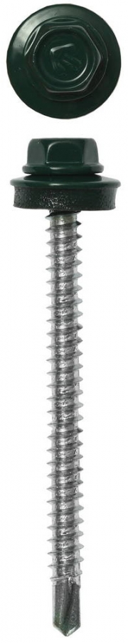 Саморезы СКД кровельные, RAL 6005 зеленый насыщенный, 50 х 4.8 мм, 1 200 шт, для деревянной обрешетки, ЗУБР Профессионал 4-300310-48-050-6005