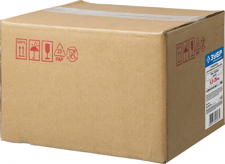 Саморезы СКМ кровельные, RAL 9003 белый, 25 x 5.5 мм, 1 800 шт, для металлических конструкций, ЗУБР Профессионал 4-300310-55-025-9003