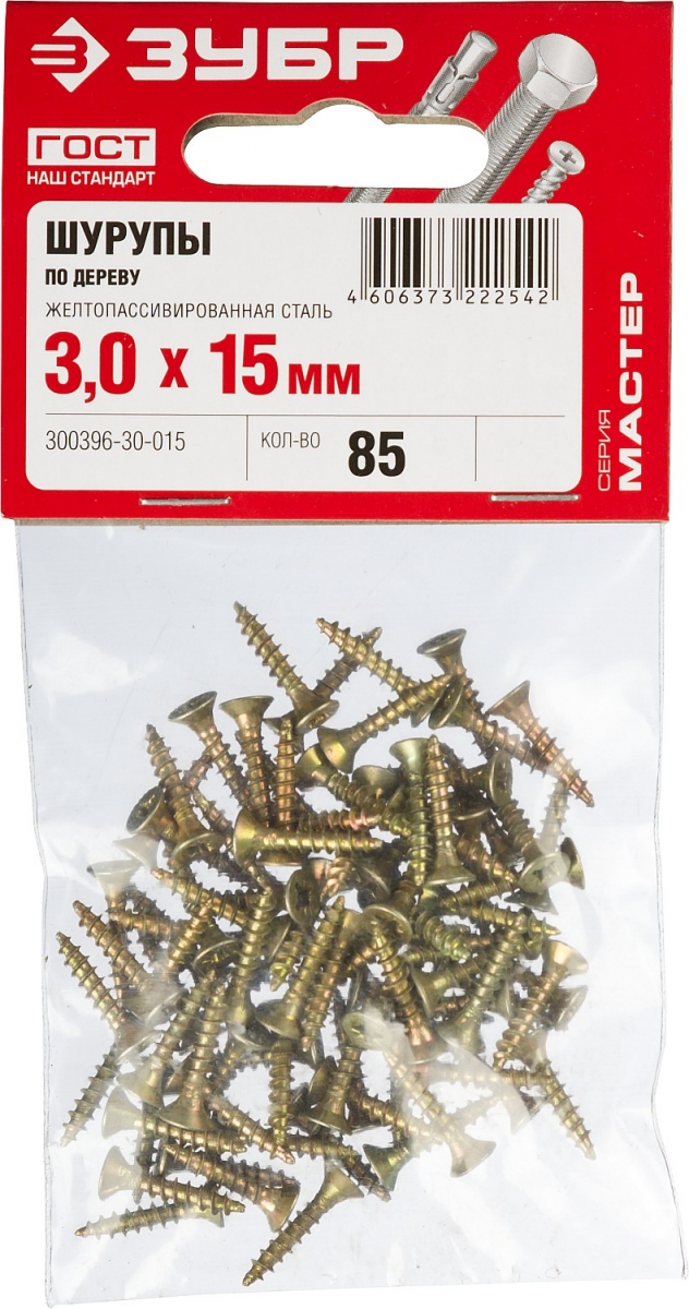 Саморезы СУ-Ж универсальные, 15 х 3.0 мм, 85 шт, желтый цинк, ЗУБР 300396-30-015