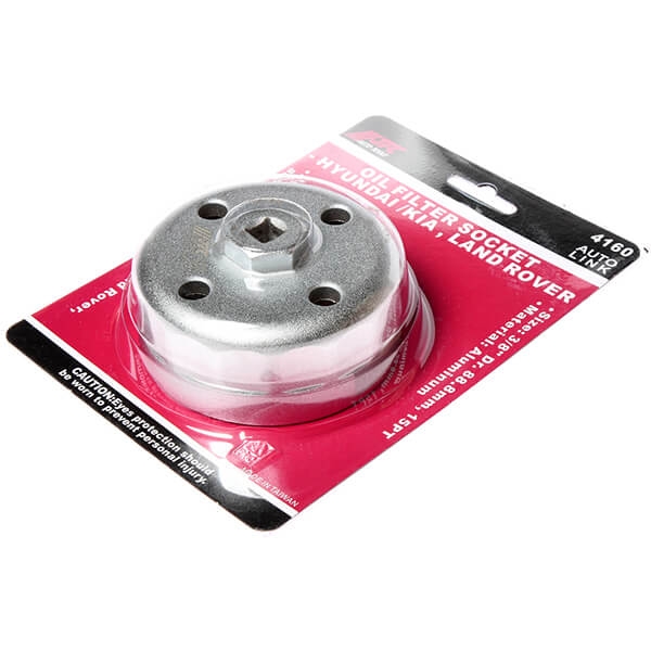 Съемник масляных фильтров 90 мм 15-гранная чашка JTC JTC-4160. Размеры: 3/8", 88.8 мм, 15 граней. Материал: алюминий. Применение: Хендай (Hyundai), Киа (Kia), Ленд Ровер (Land Rover) и пр. Габариты: 200 х 150 х 60 мм. Вес: 330 гр.