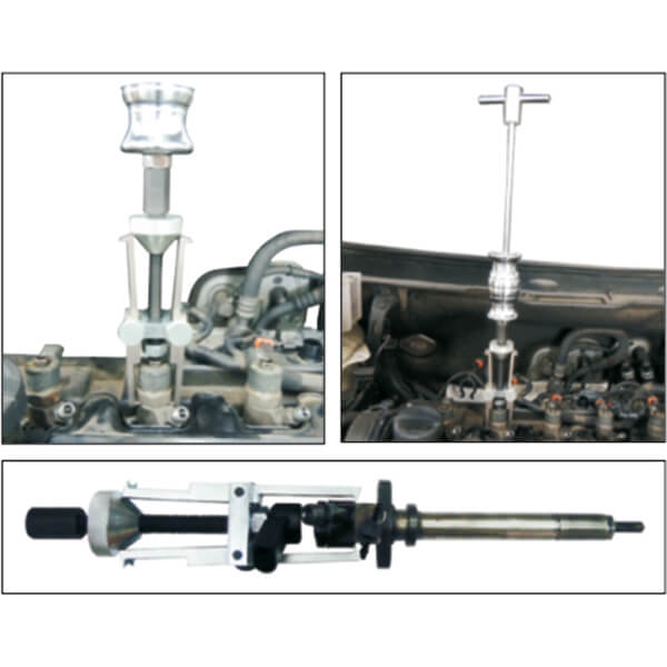 Съемник форсунок для бензиновых и дизельных двигателей JTC JTC-4226 служит для снятия бензиновых и дизельных форсунок на современных двигателях. Для работы потребуется обратный молоток JTC-2503. Съемник защищен патентом, обладает регулируемыми захватами. Пластиковый кейс удобен для хранения и транспортировки. Благодаря специально разработанной конструкции съемника снятие форсунок с дизельными и бензиновыми двигателями происходит легко и быстро. Применяется с обратным молотком (JTC-2503), который не входит в данный комплект, но может быть заказан дополнительно.