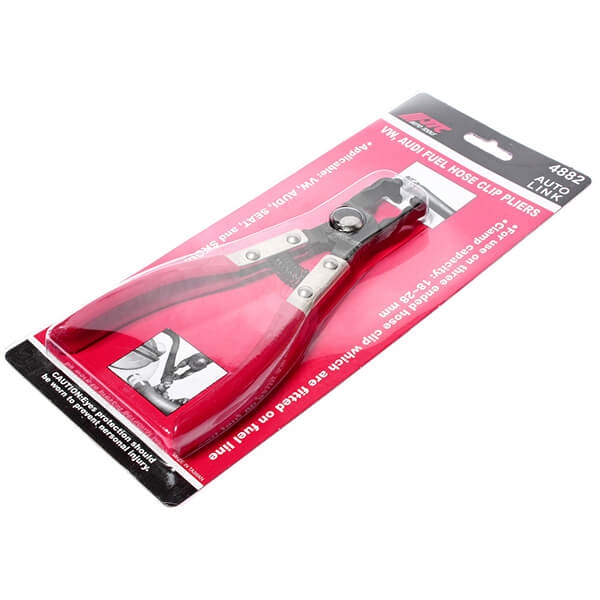 Съемник хомутов топливных шлангов (VW, AUDI, SEAT, SKODA) JTC JTC-4882 представляет собой демонтажные клещи. Изделие удобно в применении, благодаря специальным накладкам на ручках удобно располагается в ладони мастера без эффекта проскальзывания.