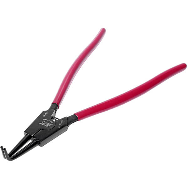 Съемник колец стопорных внешних 300 мм изогнутый JTC-SB300 изготовлен из хромованадиевой стали, что обеспечивает высокую прочность и жесткость инструмента.