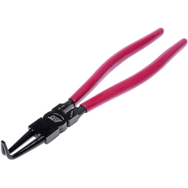 Съемник колец стопорных внутренних 300 мм изогнутый JTC-HB300 изготовлен из хромованадиевой стали, что обеспечивает высокую прочность и жесткость инструмента.