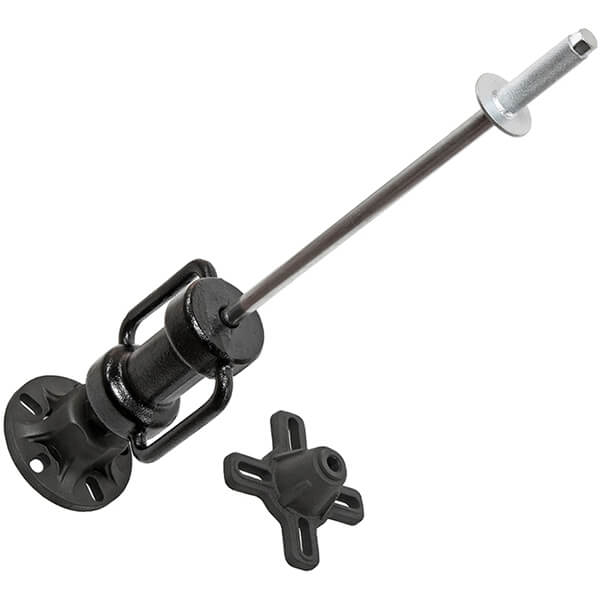 Порядок работы: Выберите пластину с 4 и 5 отверстиями, подходящую к конкретной марке автомобиля. Вкрутите пластину в съемник с обратным молотком (при необходимости). Прикрутите пластину к ступице колесными болтами. Убедитесь, что болты закручены до упора и съемник установлен перпендикулярно к ступице. Используя обратный молоток, демонтируйте ступицу.