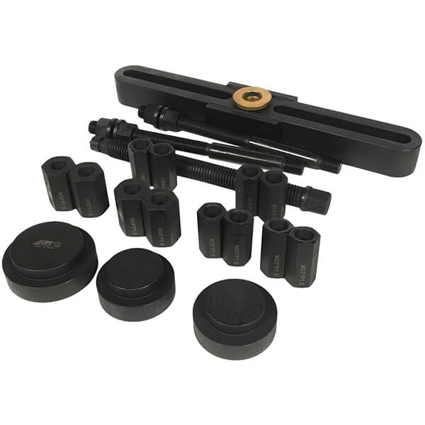 Съемник ступиц универсальный 110-448 мм для грузовых автомобилей JTC-5167 применяется для демонтажа ступицы на большинстве грузовых автомобилей. Диапазон работы: 110 - 448 мм. Размер адаптеров: M18xP1.5, M20xP1.5, M22xP1.5, M24xP1.5, M30хP1.5, 7/8"xW11. Размер оправок: D90 x d62.7, D95 x d65, D110 x d85. Применение: для японских и европейских грузовиков.